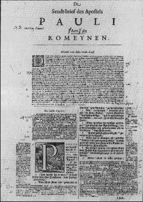 A special piece of work from this period is the “Statenbijbel”. This “State Bible” was completed in 1637. The authorities decided in 1618 that there was a need for a direct translation of the Holy Bible into the Dutch language for scientific purposes. Up to that time, translations were made from other translations. As every translation causes a loss of validity, a direct translation was needed. This work was a great contribution to the development of the Dutch language.